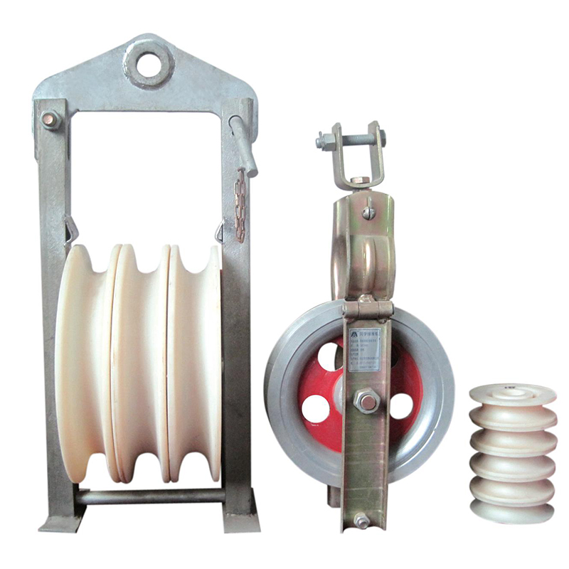 用途:适用于在直线杆塔上展放导线,钳接管和钢丝绳连接器、旋转连接器可以从槽内通过。